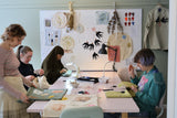 Broderi er et vigtigt håndværk hos I TRÅD MED VERDEN. Det er langsommeligt, kræver fokus og kan læres af de fleste. De fleste praktikanter starter omkring broderi bordet, hvor de kan fordybe sig og fokusere på et sting ad gangen uden en deadline.